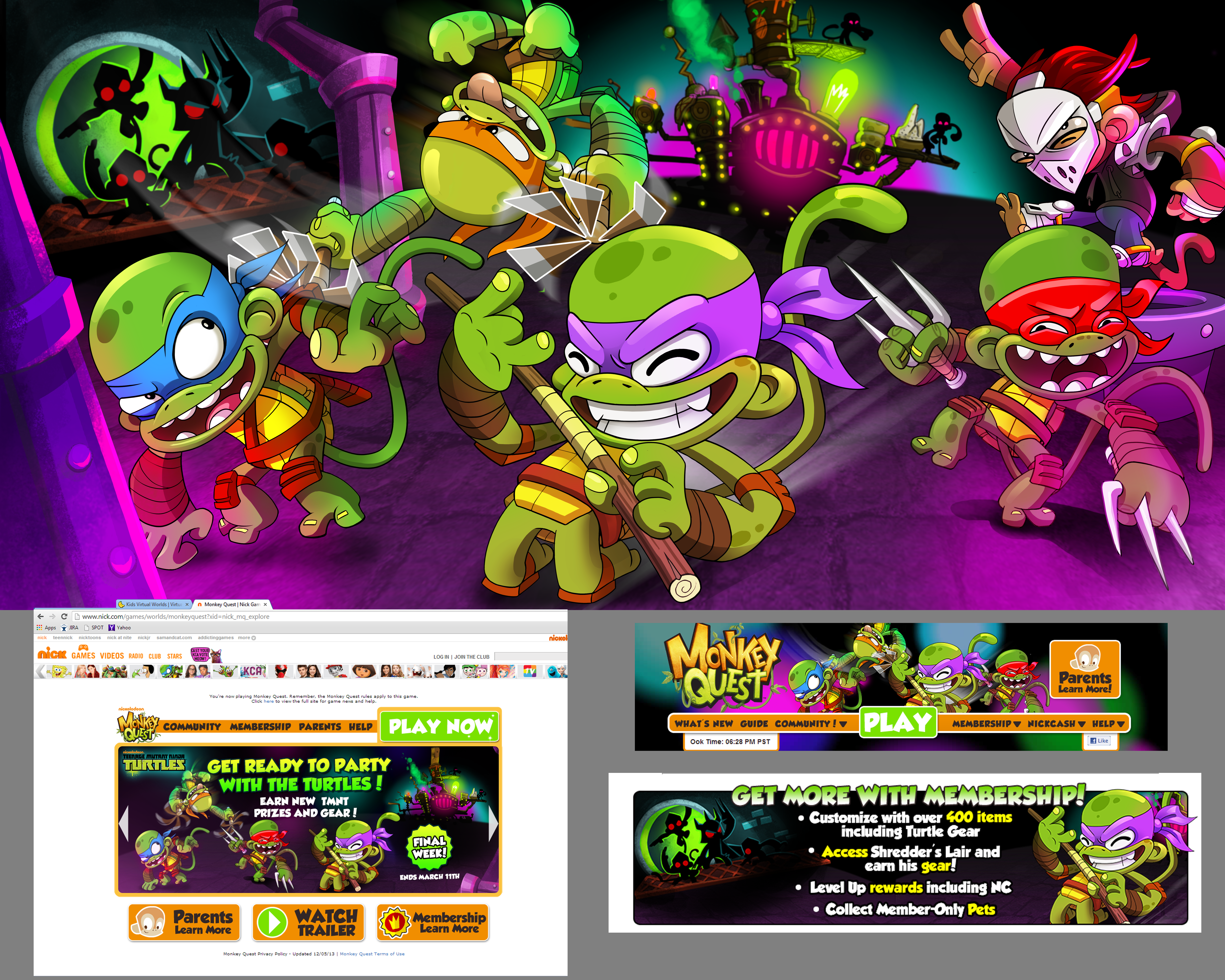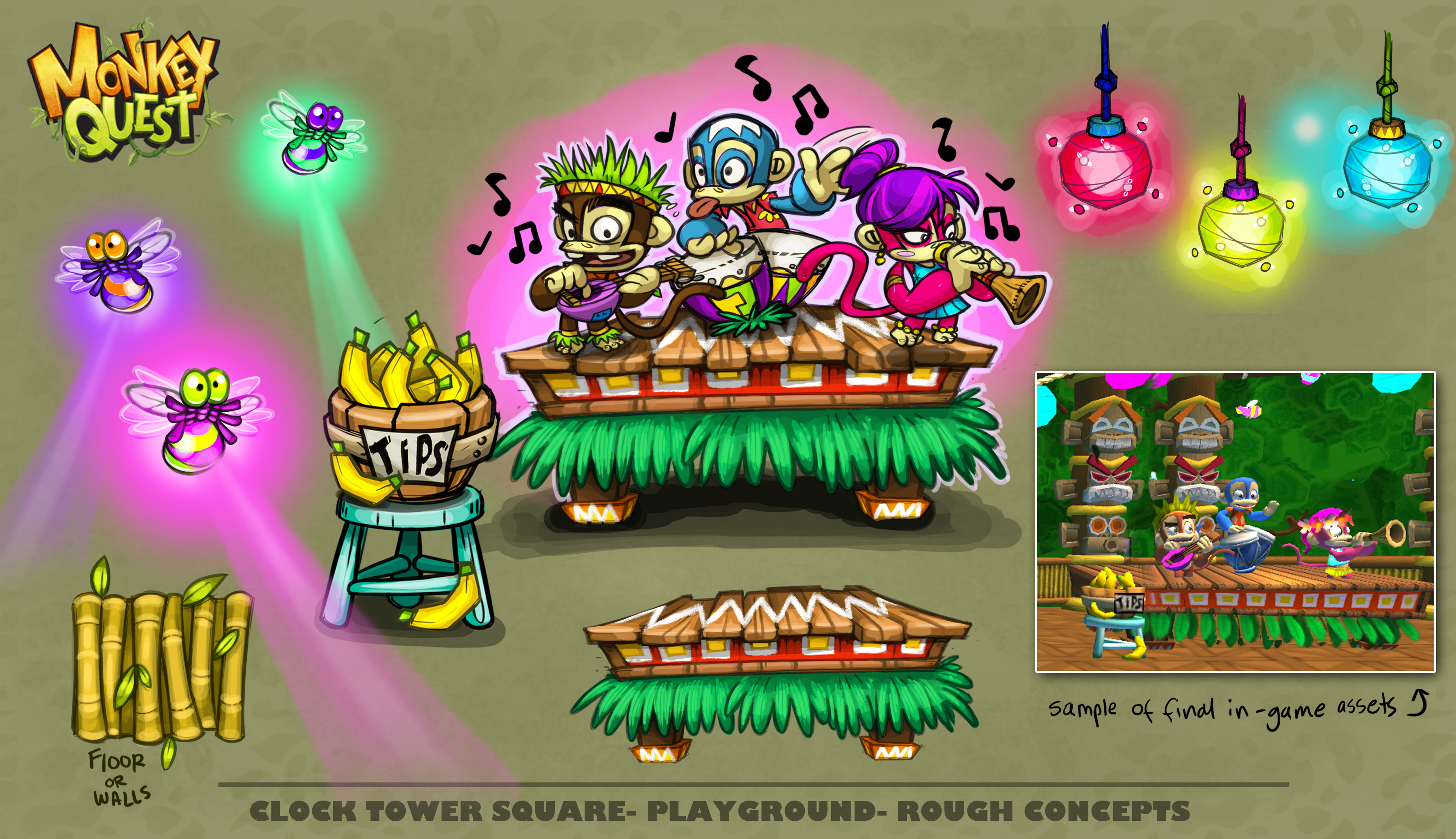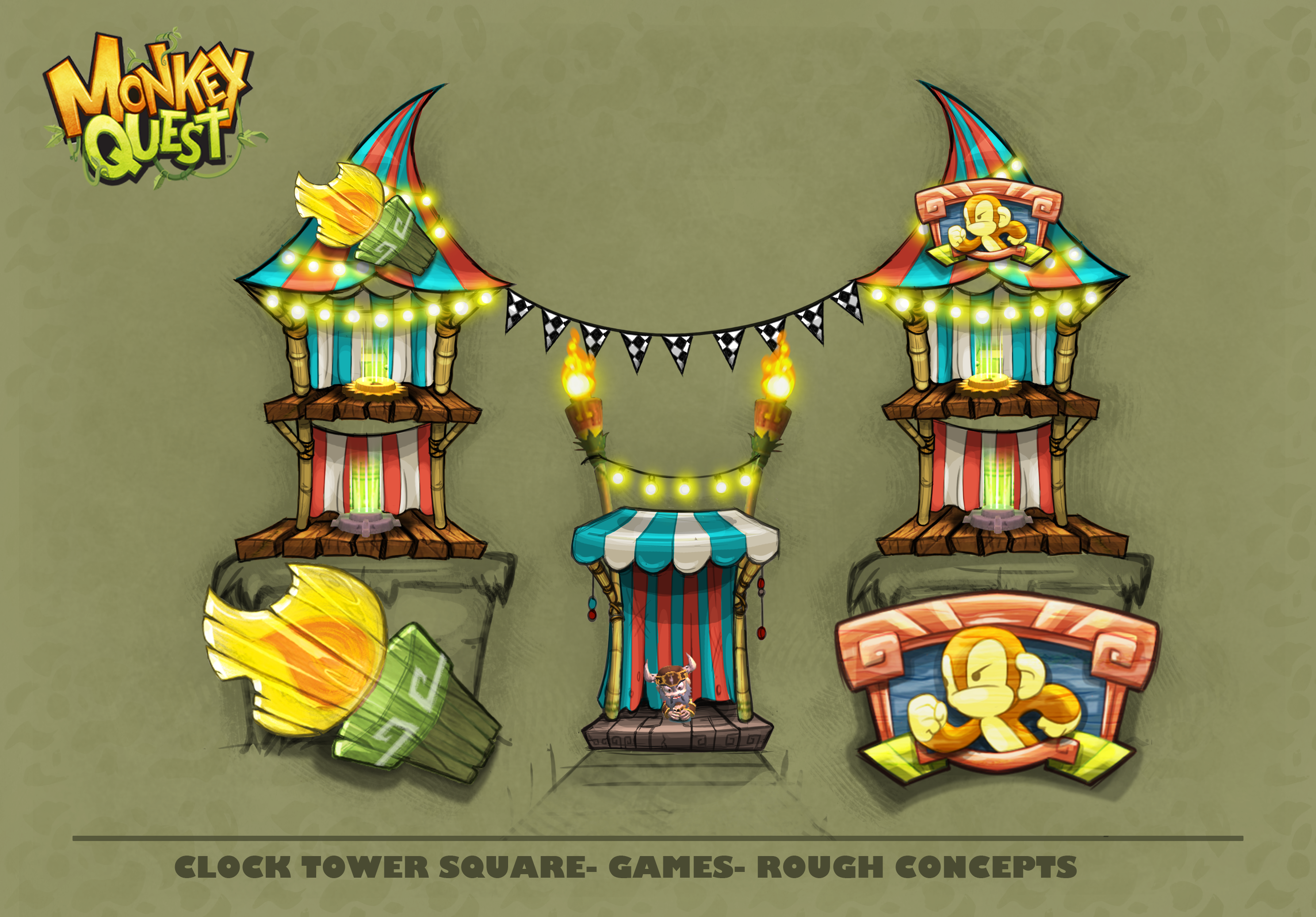 As Lead Artist on Monkey Quest, I contributed extensively to the creation of concept art for environments, characters, props, and wearables, supporting the development of the game’s visual identity. I collaborated closely with game designers, animators, and engineers to maintain stylistic consistency and ensure technical feasibility across all assets. Beyond in-game art, I created a variety of marketing illustrations for web, email, and promotional campaigns, helping to unify visual storytelling across gameplay and brand outreach.