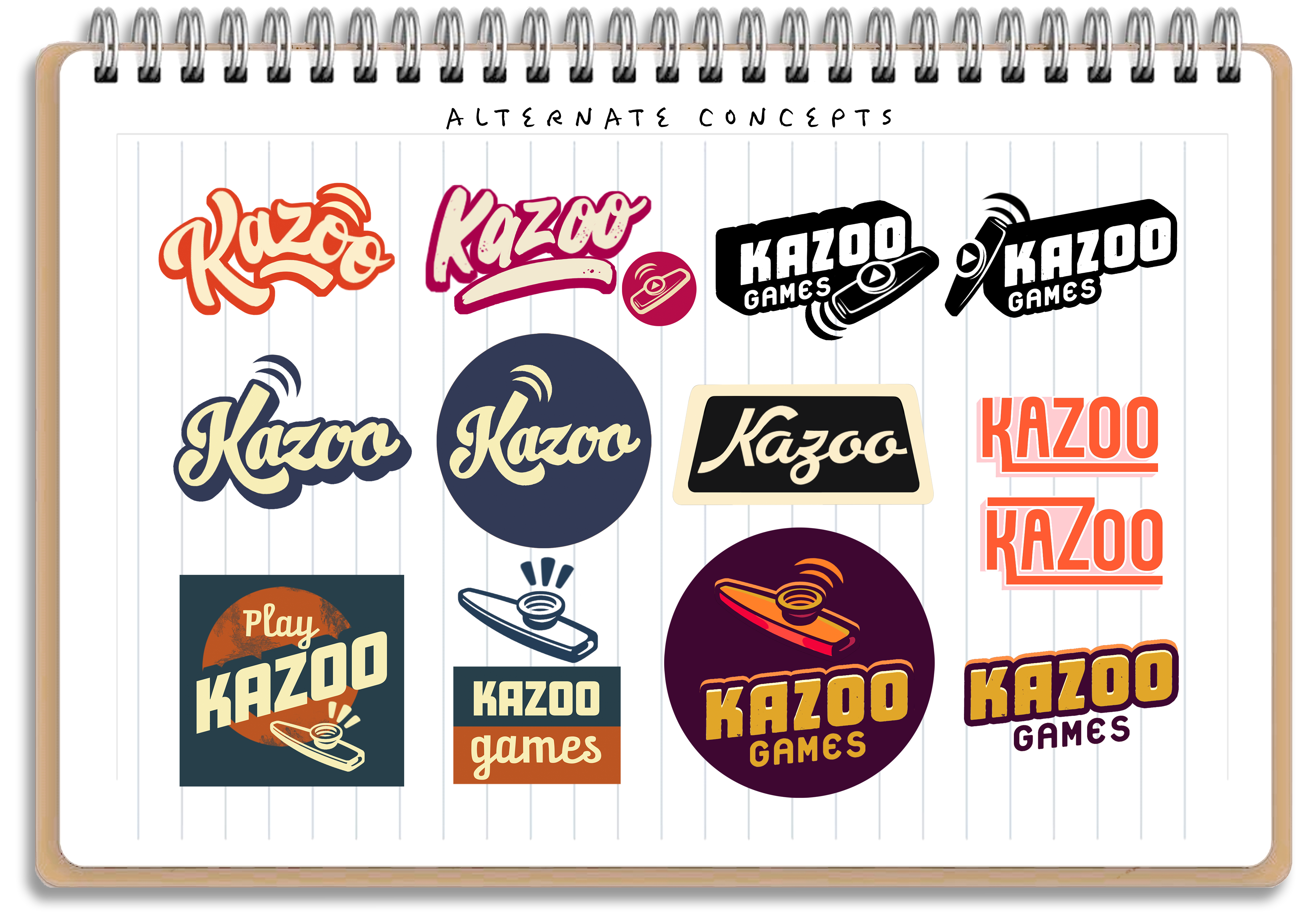 These are examples of the branding, graphic, and web design work I created for Kazoo Games