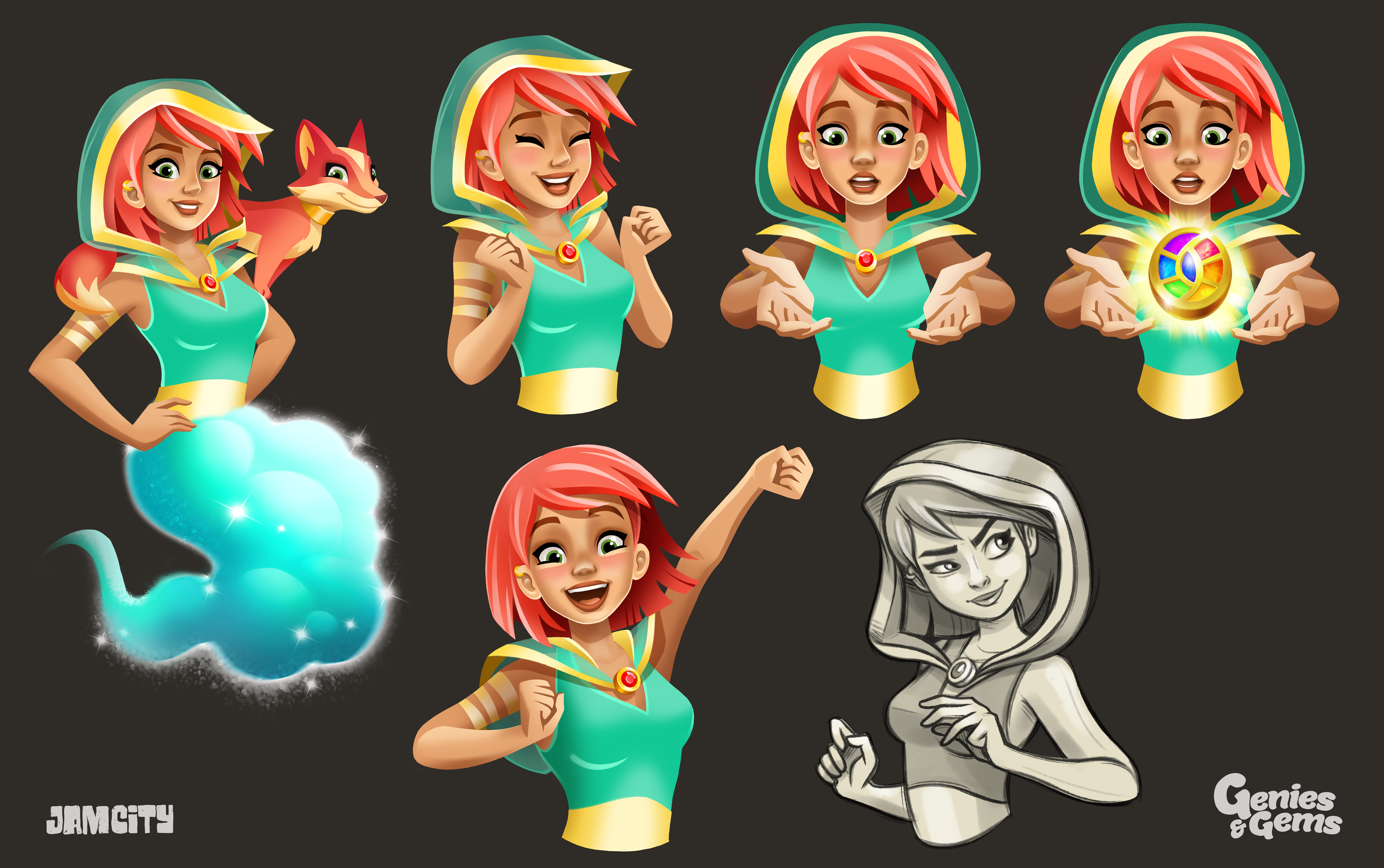 I illustrated the Splash Page for Genies & Gems. This appears in marketing campaigns and on the Home Page for the game.
